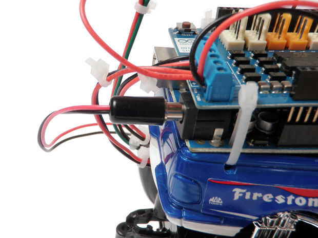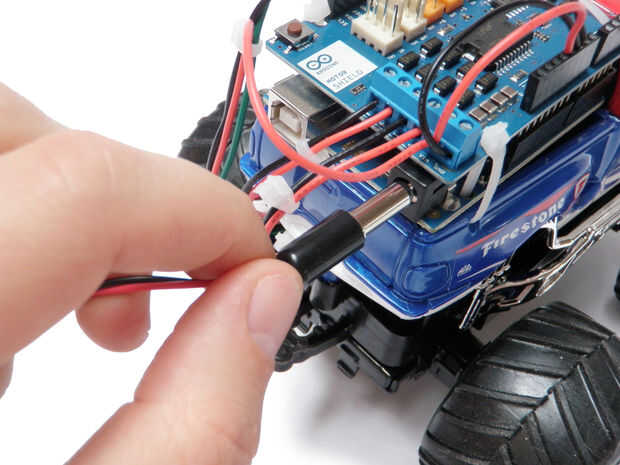 Nota: Si decide que desea reprogramar su Arduino, antes de conectar el cable USB, desconecte la batería de 9V y la conexión entre la toma de alimentación de Arduino y el escudo del motor.