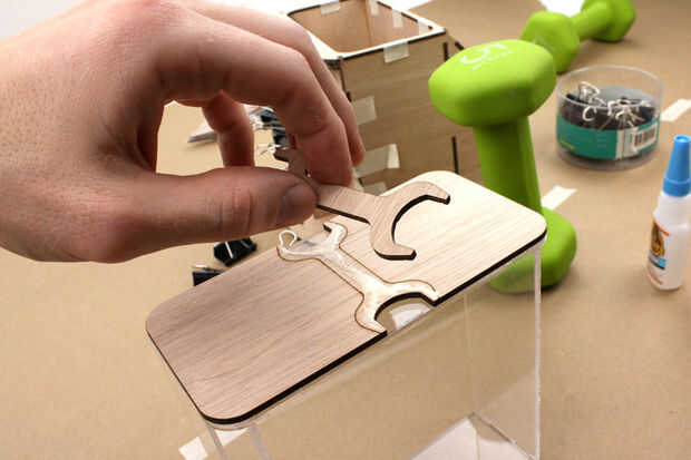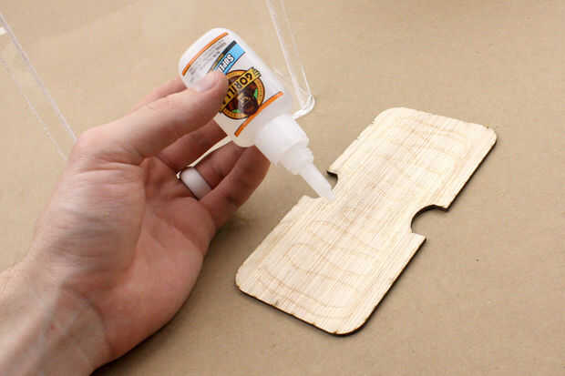 Usar el CA / Super pegamento para unir la madera (a lado feo) a la pieza de acrílico correspondiente. Si usted quiere conseguir lujo puede pegar tal que el grano coincide con la cara cuando todo esté montado.
