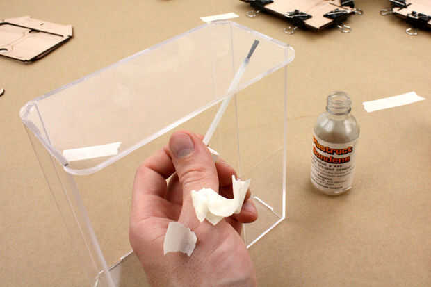 Pegamento de acrílico es impresionante. Debido a su naturaleza libre usted puede unir piezas que ya están en posición.