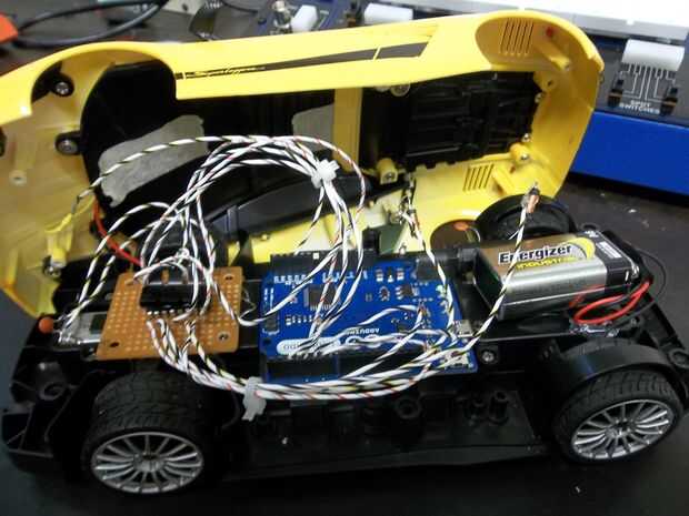 Hola chicos! Así que para mi clase de electrónica este año nos fuimos la tarea de crear algún tipo de aparato electrónico para demostrar lo que aprendimos durante el semestre. Siendo un tipo amante de coche de chico, decidido a conseguir un coche RC y ver de qué manera pude hackearlo utilizando a un Arduino Leonardo tenía sobras del laboratorio. Tener un sensor de proximidad infrarrojo práctico, pensé que estaría bien utilizar el sensor para frenar el coche cuando se puso demasiado al chocar contra una pared. Voy a intentar ser lo más claro posible en el caso de chicos quiere construir algo similar o en caso de te ayuda con uno de sus proyectos.