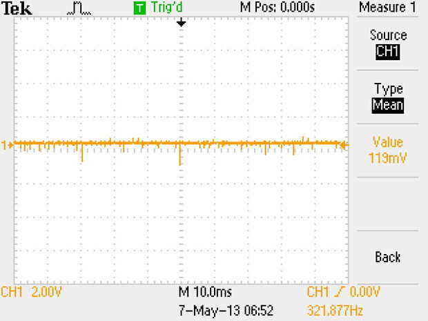 Entonces medí la tensión en las conexiones a los motores de DC. Cuando entrada el motor fue alta la tensión van desde 4,80 5,00 voltios. Y por supuesto, cuando la entrada se baja el voltaje era cero.
