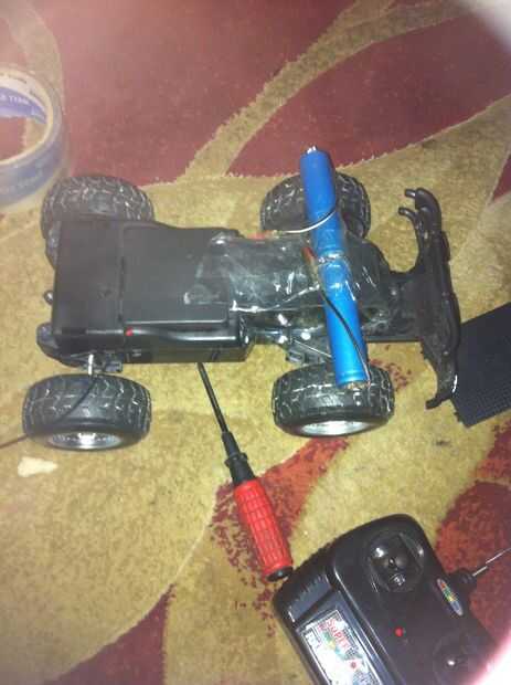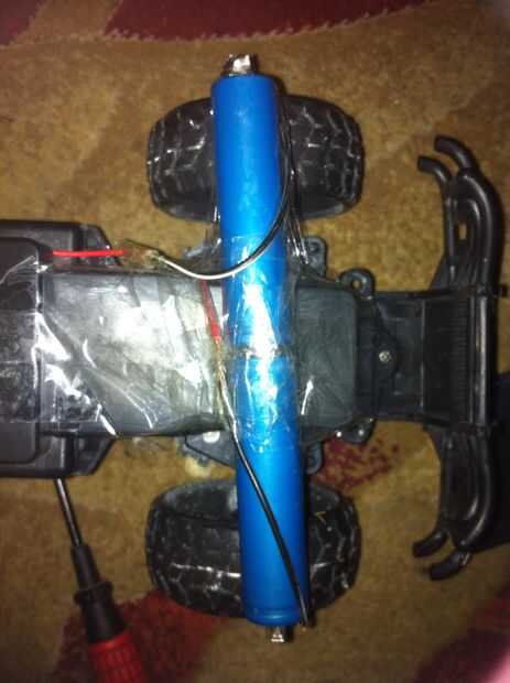 Ingresé a 2 baterías con cinta y unido a mi coche RC