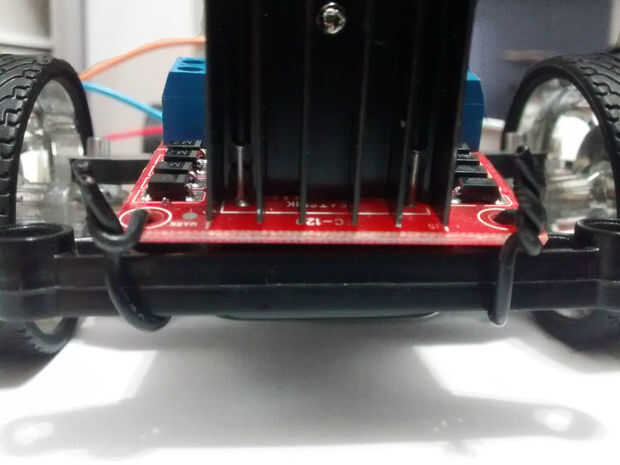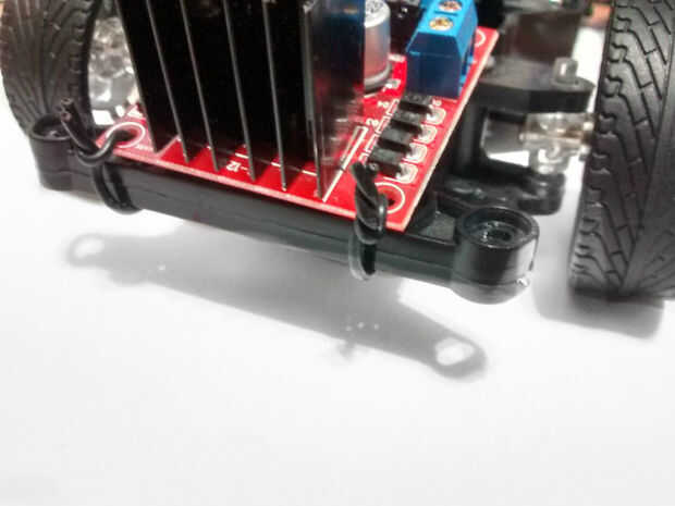 Buscar una buena ubicación para el controlador de motor. Elegí el borde frontal más sobresaliente para montar mi. Originalmente utilizado lazos de torcedura, pero desde entonces pasó a tornillos. Cómo lo hice fue medir y perforando dos agujeros de tornillo en el estante plástico y entonces libremente había asegurado el conductor del motor a la plataforma de plástico. Le doy las fotos de esta instalación en el paso siguiente.