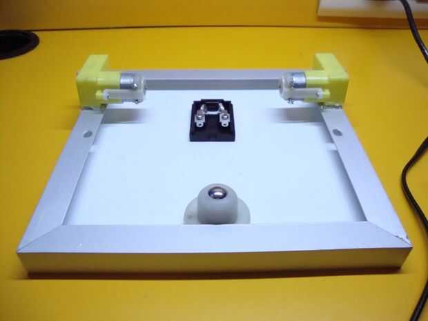 Puesto que el robot utiliza dos motores traseros, se debe agregar algo en la frente para que lo apoyen. Rueda del echador hace el trabajo ya que tiene una bola de metal que actúa como una pequeña rueda y evita la fricción al girar en una dirección en la que el robot móvil. Pegarlo en su lugar con pegamento caliente en la parte delantera.