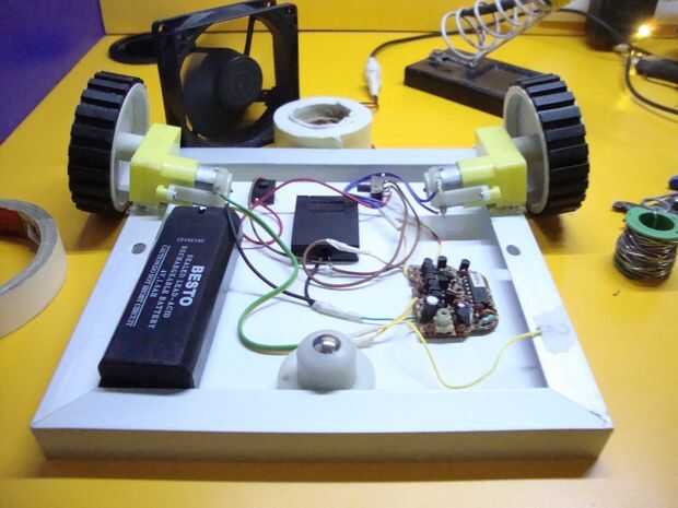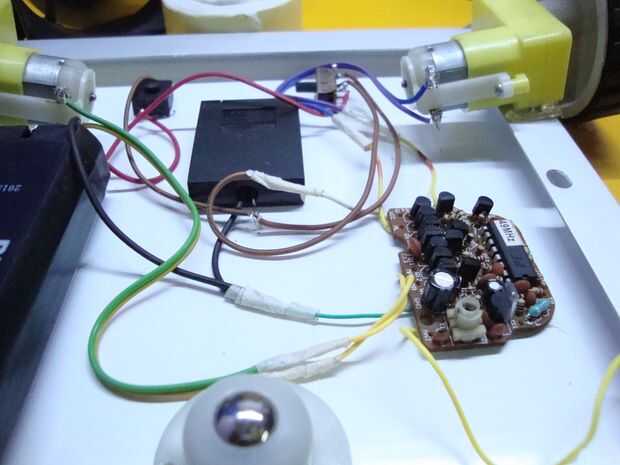 El último paso para completar el robot es para limpiar todas las conexiones. Utilizar alguna cinta que pegan los cables dispersos. Caliente pegarlos a la base para que no desconexión fácilmente.