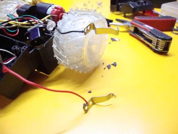 El siguiente paso es localizar todos los cables que estén conectados al chip y cortarlas. Para esto, primero corte los dos cables en cada uno de los dos motores, a continuación, el interruptor, batería, leds y otras partes si están presentes. Asegúrese de que todavía tiene algunos cables conectados al interruptor.