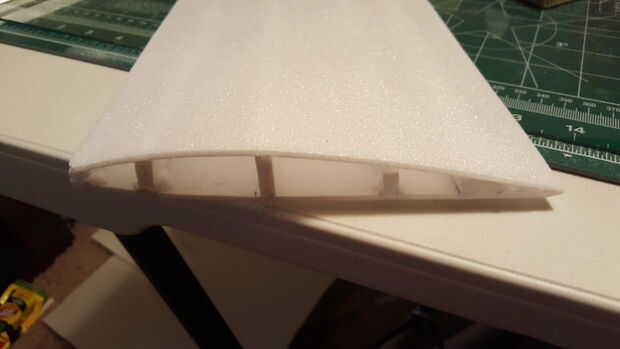 Espuma de Depron es bastante durable y fácil a la forma. Los planes de darán el patrón, las medidas y forma de los cortes de espuma que tiene que hacer. Pero es muy importante utilizar cuchillas (cuchillas x-acto son excelentes y opaco después de algunos cortes largos para mantener un buen suministro!) para cortar la espuma sino también los cortes deben ser de 90 grados a la superficie de corte. Esto hace que para las líneas limpias y área de superficie para el pegamento adherir la espuma. El pegamento gorila se expande con agua para que no sobre hacerlo!!!!!! Agrega peso demasiado si se usa en exceso y nunca una buena cosa para volar aviones!