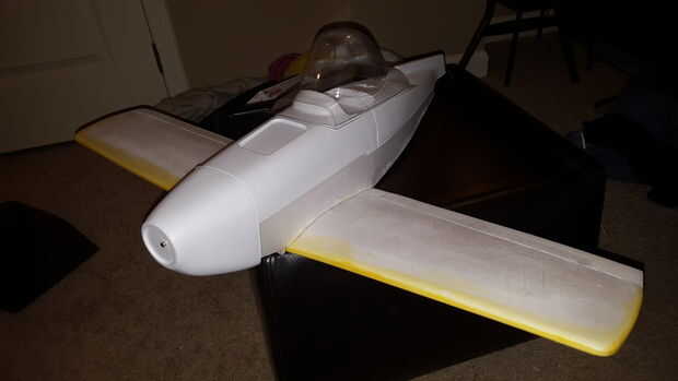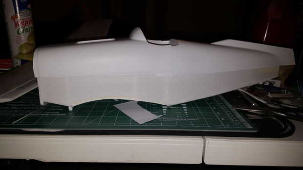 Cinta de enmascarar (bajo tack) ayuda a sujetar las piezas en su lugar hasta que el adhesivo se seque. Utilizado con moderación y en pequeñas tiras. Las alas se construyen separados y con una media "silla de montar" para llenar la brecha y prever diedro del ala. Me pareció más fácil al hombre los bordes interiores de la superficie de ala un poco más ya que tienen a lijar de forma y que encaja perfectamente la pieza de ala media. Desde aquí, el fuselaje principal obtiene montado!