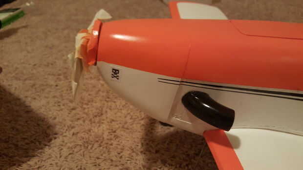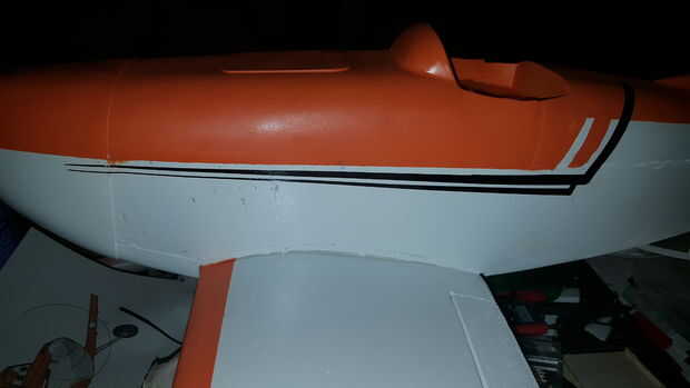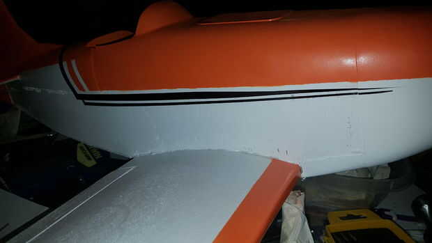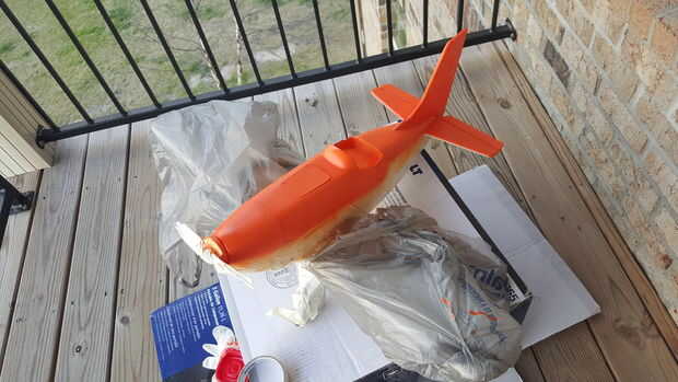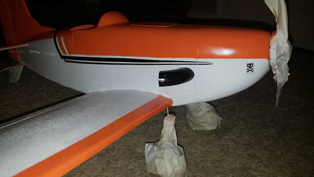 Nota: El color naranja utilizado tenía que ser mezclada como nadie el color exacto o cercano. Usé algunos amarillo Cub de Testors y había rociado en una taza. Y lentamente rociado en rojo brillante y mezclados, un poco a la vez, hasta que tuve alrededor de 3 oz de una buena naranja sentía estaba cerca. De mascarilla hay zonas no para rociar y rocíe el plano entero en blanco brillante. Finalizar para terminar. A continuación, la máscara de blanco con cinta bordada bajo y papel (después de que el blanco está seco) y aerosol de la naranja. Poco a la vez, golpes ligeros y capas delgadas para construirlo. pegar en los ojos, cortados las franjas de la cola de la misma película blanco y negro y palo en el timón y la diversión se hace!