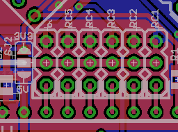 En la parte inferior del tablero, hay una huella con "AREF-SEL", que le permite elegir el voltaje de referencia analógica por soldadura sobre los 5V con almohadillas o 3V3. También se puede utilizar aquí una resistencia de 0 ohmios, o un grano de ferrita. Nota que AVCC está siempre conectado a 5V.