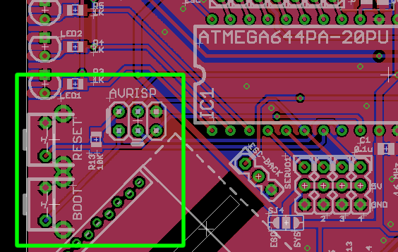 El interruptor de reset debe estar instalado, R13 10 K ohmio es la resistencia de pull-up para el interruptor de reinicio. Este resistor es opcional porque el ATmega644PA tiene una resistencia de pull-up incorporado en el pin de reset. Se debe instalar si no confías a la resistencia incorporada.