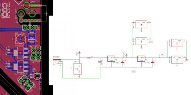 Si se alimenta este circuito de una batería, debe instalar un regulador de 5V LM1117 en SOT-233-3 envases donde se indica en la placa. Esto puede omitirse si utiliza el CES como la fuente de alimentación (Asegúrese de ajustar correctamente el SJ1), o en otras circunstancias que están bajo.