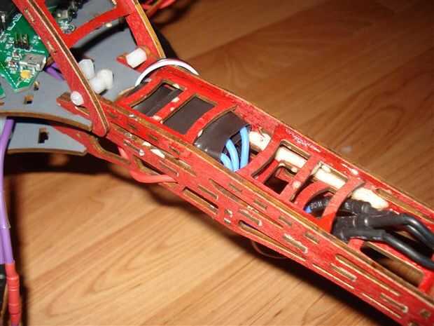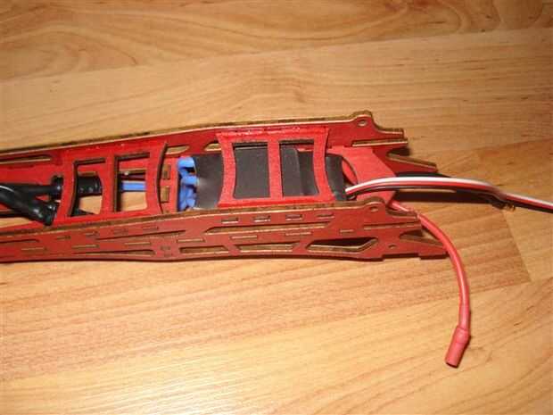 Asegúrese de que todos los cables gruesos punto abajo. El cable de servo delgada todavía debe apuntar hacia arriba. Si tienes las mismas piezas que tengo, todos los cables deben ser la longitud perfecta necesaria.