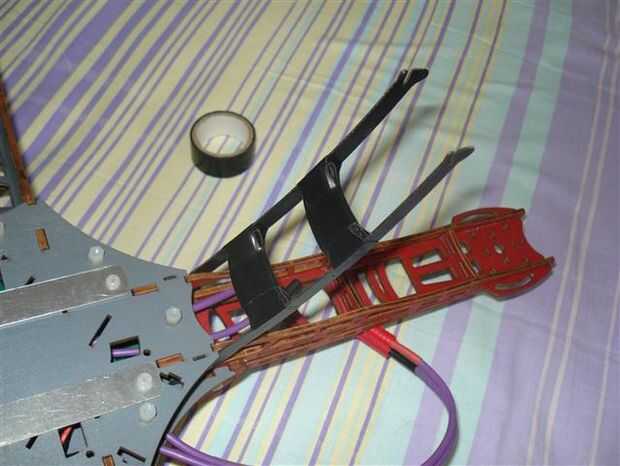 Debe haber algunos largueros negro finos para las piernas en el juego. Algunas personas pegamento en lugar pero usé cinta aislante.