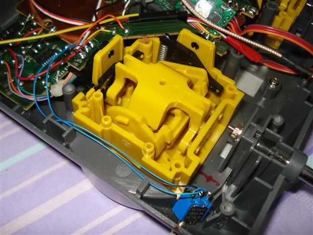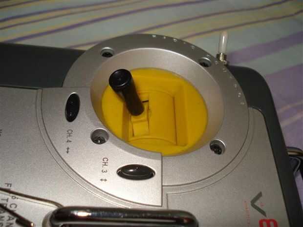 También los joysticks son generalmente resorte para que devuelvan al centro cuando lo suelte. Probablemente no desea esto para el acelerador. Consulte el manual de la emisora radio RC para ver cómo se puede deshabilitar la primavera. Mi transmisor de radio RC, yo simplemente lo desarma y saque el resorte (no perderlo!).
