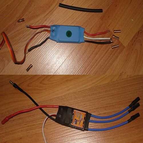 Cables de los conectores de bala hembra 3,5 mm a la salida la salida de la soldadura. También la soldadura de los conectores para los cables de entrada de la ESC. Asegúrese de que realizar un seguimiento de lo que la polaridad de los conectores son por lo que no conectar positiva a negativa.