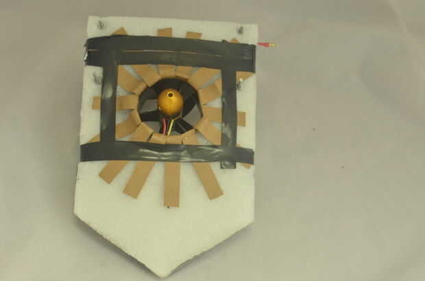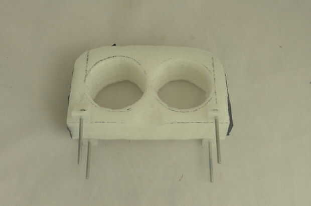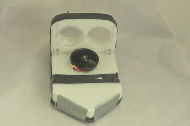 - La parte superior es donde fijamos los dos motores de propulsión de gran alcance. Corte dos agujeros del tamaño adecuado deben hacernos ir. Ahora el único problema es cómo acoplar la parte superior a la parte media. Para ello, estamos utilizando el triángulo plástico como se menciona en la lista de material. Se puede ver en la imagen aquí.