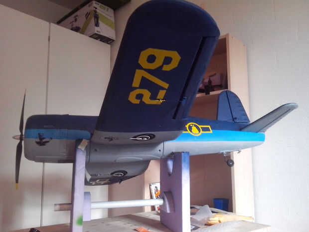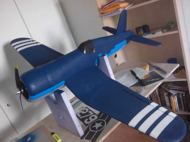 Me pintó con aerosol acry y decoradas algunas partes con un rotulador EDDING. Algunos artículos de la decoración que hice con la etiqueta que imprimí en la impresora en casa. De valores haciendo algunas pruebas de aplicación de pintura y de la etiqueta para comprobar si los materiales trabajan bien juntos (Depron no le gusta cada tipo de solvente de la pintura!)