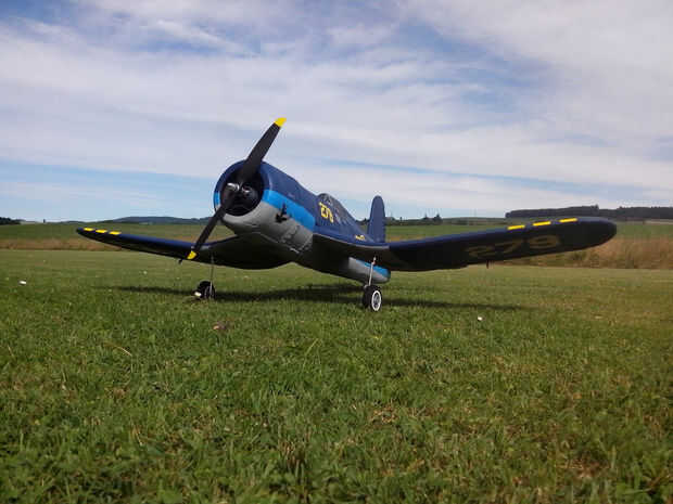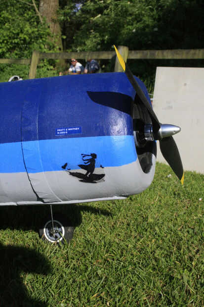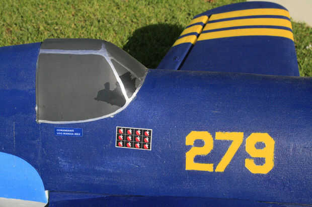 Mi Corsair tiene una pera amarilla en el fuselaje y el ala, rojo-blanco manzanas (etiqueta) cerca de la cabina y el piloto es Ugo Mangia-Mele (Italiano para Hugo Apple-Eater).