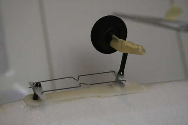 • Para alojar la rueda de cola, imprimí una parte de la impresora 3D y pegadas en la estructura de fuselaje de Depron. Ficheros STL para impresión 3D se unen en este paso.