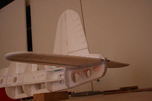 • La horizontal y el estabilizador vertical duplicó con vigas de fibra de 2x6mm depron y carbono para rigidizarlo.