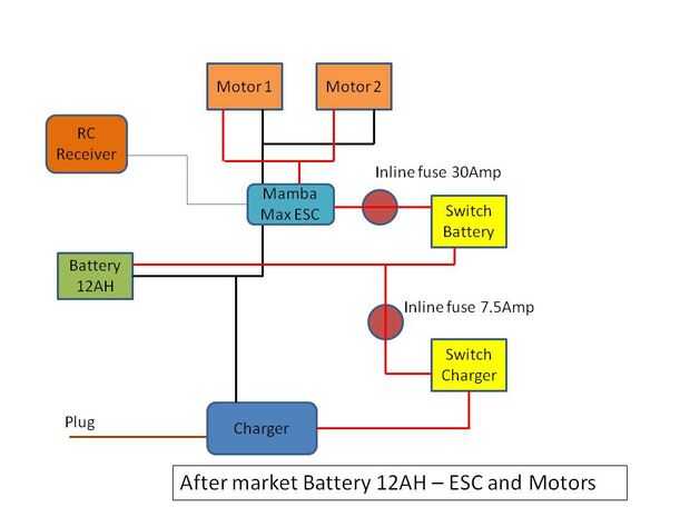 Mayoría después de que las baterías del mercado no tienen este fusible. Puesto que ya no estoy poniendo la energía de la batería a través de un interruptor de circuito antes de que llegue a mis sistemas, necesito agregar en un fusible en línea para. Los motores tendrán un en línea fusible de 30 amperios para proteger la electrónica hay también. También estoy instalando un sistema de carga a bordo llamado un 300 de Schumacher para cargar la batería. Debido a esto, he comprado la oferta de la batería con un 7.5 de fusible para evitar cualquier problema que se presenta con el cargador y la batería.
