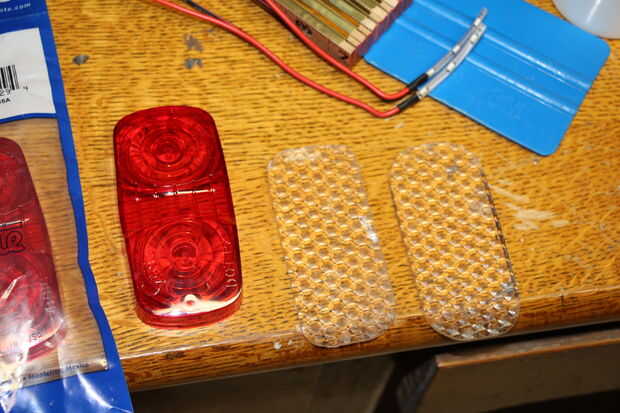 Las luces de cola en el Jeep también eran pegatinas. No había ninguna lentes o incluso huecos como tenían los faros. Debido a esto necesitaba un objetivo para trabajar con. Encontré un proveedor en Ebay de luces de cola del remolque. He comprado dos de las luces, modelo Grote 91962 que eran tamaño casi perfecto para lo que quería. No tienen ninguna montajes del tornillo que encajen en su lugar cualquier remolque modelo habría ido en.
