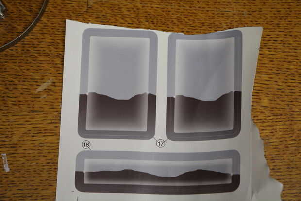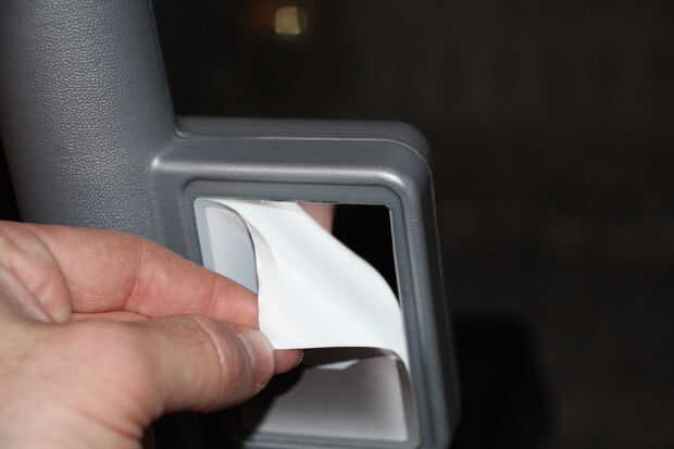 Espejos: he comprado un kit de reparación de espejo que recorte y pegue en su lugar. Coloca los espejos originales de etiqueta engomada sobre el kit de reparación y recortar con una cuchilla de afeitar para replicar exactamente su tamaño. Éstos entonces fueron agregados al Jeep con la cinta adhesiva que vinieron con. Ahora es un reflejo que se puede ver a vs una imagen de una montaña en el fondo. Esto también ayudará a Oliver ver las luces de encendido con el conmutador de pedal de pie detrás de él. O ver a su hermano que dejó en el polvo...