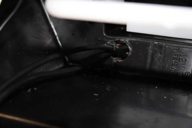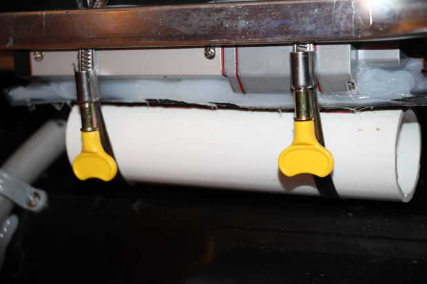 dando las superficies estáticas para empujar contra el movimiento. El actuador era colocado en su lugar con sellador de silicona para ayudar un poco resistente a la intemperie y entonces atado con ajustable de acero inoxidable anillo abrazaderas, que envuelven el actuador y alimentado a través del compartimento anterior. Un pedazo de PVC fue agregado para permitir que las correas de ajuste bastante alrededor del actuador sin doblar en ángulos difíciles y perdiendo fuerza. Este proceso mantendrá el actuador se mueva fuera de lugar cuando se aplica la fuerza.