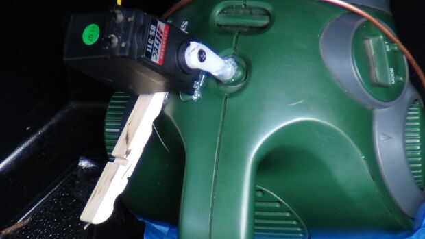 El sistema de dirección en este instructable fue una primera prueba y no funcionó muy bien. Yo sugeriría una más fuerte, parte inferior montado servo o actuador lineal.
