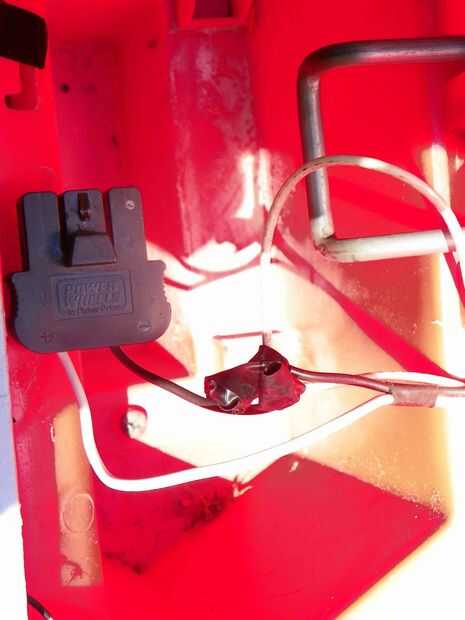 1. Desenrosque los tornillos que sujetan la palanca de cambios a las ruedas de energía. Separe el conector de la batería de la batería (ver foto). Cortar los cables que va desde el conector de la batería en el vehículo.
