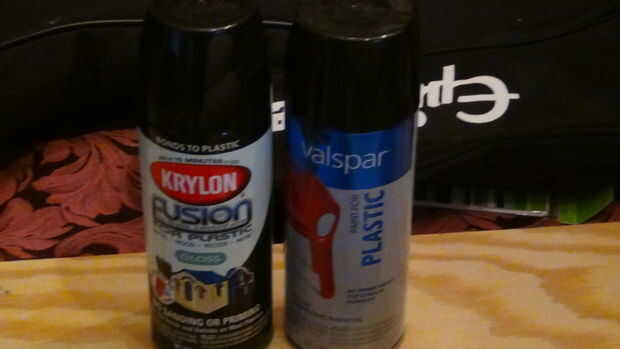 -Usé Krylon Fusion, que se adhiere al plástico sin cebado. Que terminé tener que salir y conseguir más pintura y fueron de Krylon para conseguí pintura plástica Valspar. Te aconsejo no utilizar Valspar, parece buena con krylon en el jeep, pero cae en mis manos y huele horrible en comparación con Krylon, que se encendió con humos ni goteo.