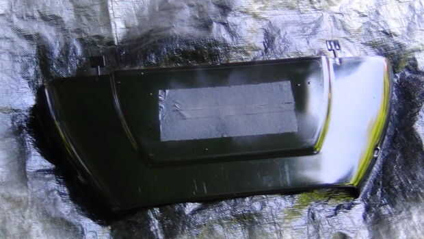 -Luego Desenroscar las luces traseras y apareció la parrilla delantera y faros. He pintado la tapa de los faros y el ribete de la cola.