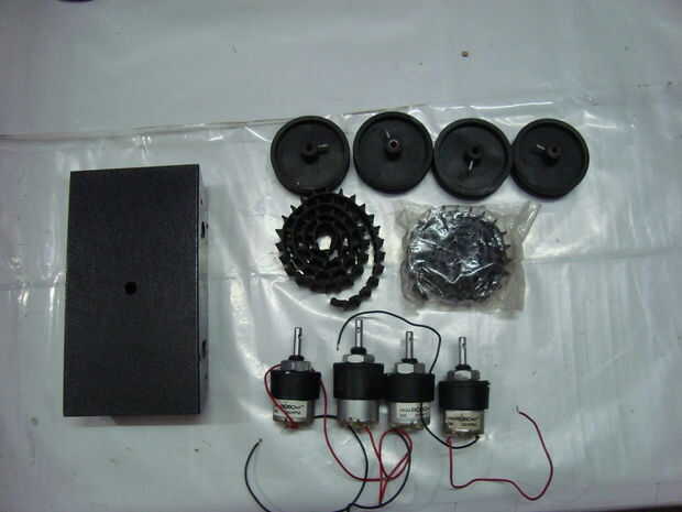 He utilizado los motores VEGAKIT de 4 300 RPM. También, si desea utilizar ruedas de orugas, puede utilizar porque no hay ningún tal parte del cuerpo que podría causar cualquier obstáculo en el movimiento correcto de las pistas.