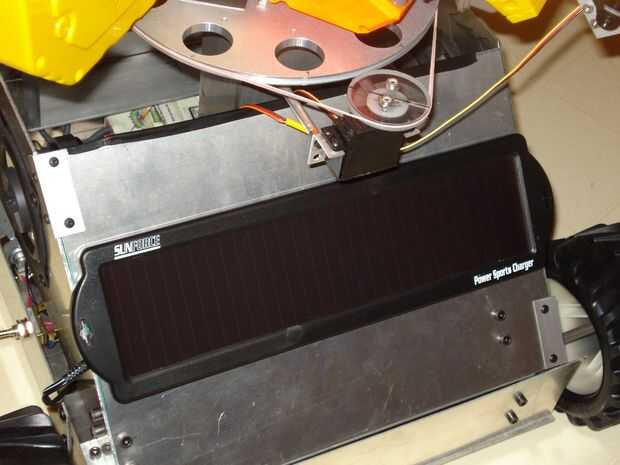 Por ahora el grupo actúa con el regulador de voltaje para actuar como un sistema de alimentación de reserva de emergencia para la cámara en caso de que algo va mal. Si la batería principal muere o poder de alguna manera se pierde el sistema cambia a solar para la cámara. Así al menos puedo ver donde está el tanque y qué sucede a él. Montado con velcro con adhesivo que es gran cosas para montar cosas que querrá quitar a menudo.