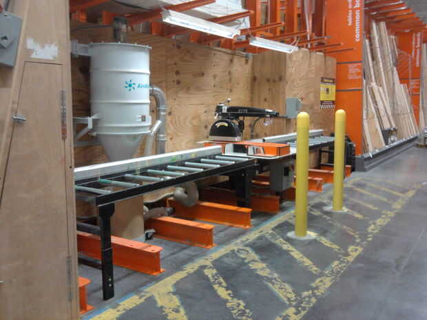 Mi cama es queen size que es nominalmente 60 "x 80". Así, con un 2 x 6 x 12 puedo conseguir un ~ 64" pedazo de pieza y una 80". Vamos a hacer cortes más precisos en casa, pero al menos de esta manera realmente puedo conseguir casa. Sin duda podría han tenido les realizar este corte en el tamaño adecuado, pero todavía no había recibido las mediciones precisas. Gritos.