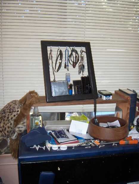gracias Sr. Tick Tock para la inspiración, aquí está mi opinión sobre la estructura de la imagen soporte de accesorio. Es la misma idea básica, pero hice el stand diferentemente debido a lo que tenían en mano y el marco en vez de usar una tienda de comprar uno.