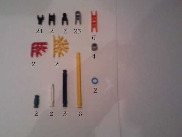 Este paso muestra cómo muchas piezas para el titular. El número bajo la pieza mostrará cuántos necesita de él. Así que no tome seis anillos gris y dos anillos azules, pero seis conectores naranja y cuatro anillos grises.