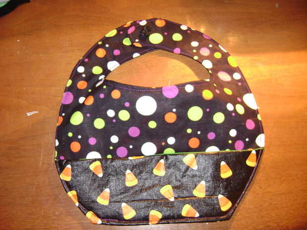 Con un poco de restos de tela, un mantel de vinilo y habilidades super astutos puedes poner juntos un babero de materiales que se encuentran alrededor de la casa.