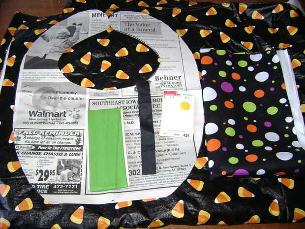 1. tela 2. paño de tabla del vinilo 3. periódico 4. tijeras, marcador y los pernos 5. Velcro 6. palillos 7. adornos: cinta sesgada, botones sugerido pero no es necesario