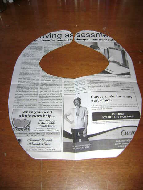 aprender cómo hacer un babero.Paso 1: materiales conseguir algunos de tela blanca o papel crepé, conseguir algún papel con colores surtidos, tijeras y cinta adhesiva o pegamento.Paso 2: Título de paso corte un cuadrado con el paño o papel, dóblalo en