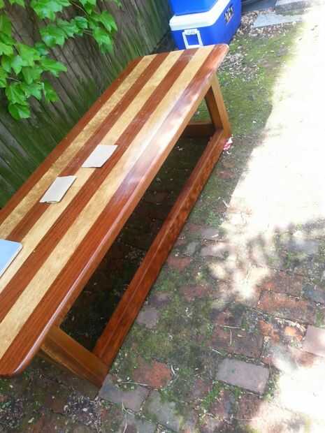 tienen una vieja mesa de café que construí con un amigo hace mucho tiempo. Pensado para ver películas y descansando sus talones en, pensé que podría ser áspero en la parte superior por lo que acabo de hacer una sencilla aplicación de mancha clara usada y de poliuretano de secado rápido. Mirando hacia atrás puedo entender tenía 14 años de edad (no un montón de libros de lectura) y cuando ofreció algunos izquierda sobre Kya (tipo de caoba africana) no gire hacia abajo junto con algunos arce. Así que me puse a poner en orden la parte superior, es lo que el ojo de la mayoría de la gente ve primero. (y espero que no se nota el acabado de perder en el álamo más abajo)