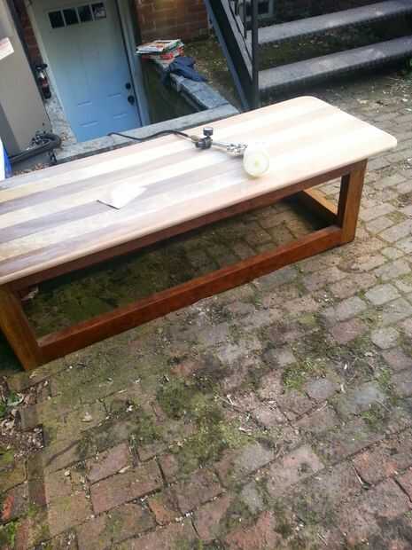 así que un rato de nuevo pensé que sería divertido para repintado de mi mesa. Mencioné la idea a un amigo una noche y antes de que supiera tenía papel de lija y se lija la parte superior de mi mesa de centro de. Ahora que he terminado el proyecto que