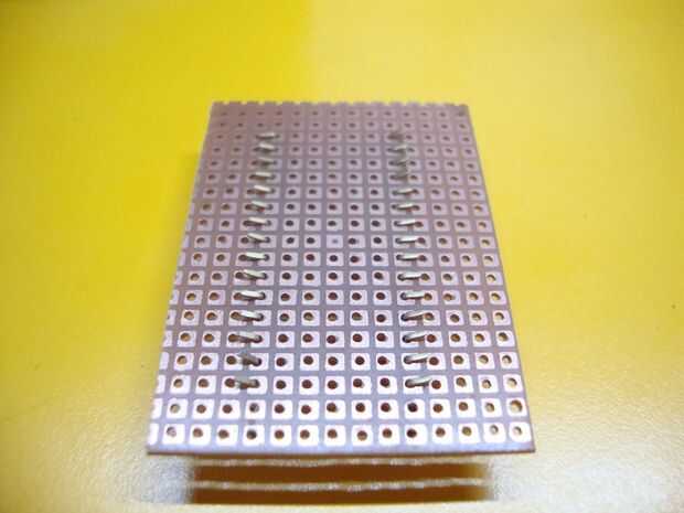 Cortar una pequeña parte de perfboard con un par de tijeras y dos piezas de mujer encabezados de 15 agujeros a la Junta de soldadura. Verifica si eres arduino encaja fácilmente.
