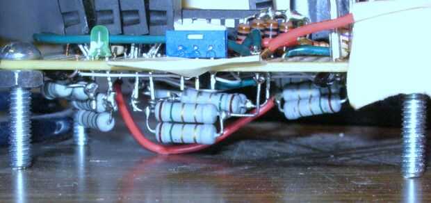 Cuarto: Construir el circuito para batería de 1, prueba. El bosquejo debe trabajar con una sola batería. Como usted puede decir probablemente en las fotos, he instalado todos las grandes resistencias en la parte inferior y los soldados por lo que se de la PCB. Esto es así puede disipar calor más fácilmente.