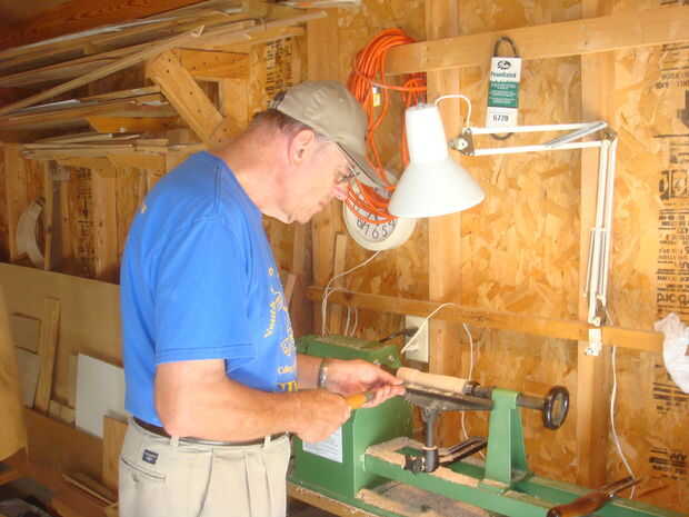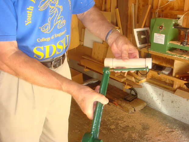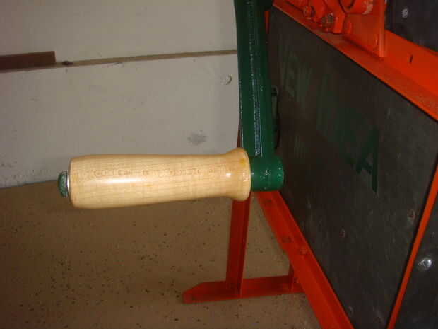 Una nueva manivela fue dada vuelta en un torno de madera maciza de roble.