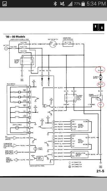 La captura de pantalla de la honda civic que manual resalté los cables necesitaba aislar para que el controlador de pwm al motor de accionamiento. Básicamente eliminé todos los otros alambres y los relais. El sistema de ventilación de mi coche he modificado pesadamente para mi clima cálido; el aire sopla sólo desde los orificios de ventilación del salpicadero y se encuentra en modo de recirculación permanente. Destruyó todos los motores para el control de ventilación ya que no tenía uso para los. Simplificado mi sistema de ventilación para adaptarse a mi clima.