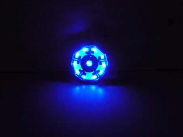 9. añadir cualquier decoración que desee a la parte frontal del reactor arc (tenga cuidado si está usando una pistola de pegamento caliente o algo con calor para añadir las decoraciones porque no ant para derretir el plástico demasiado)