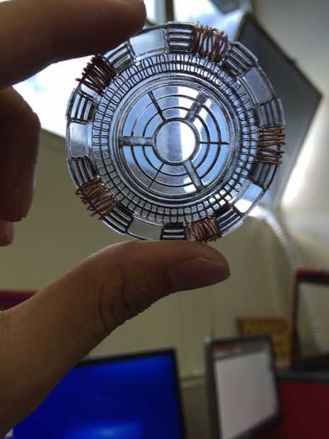 Este es mi intento hacer el Reactor de arco de hierro hombre 1.He agregado un interruptor en el circuito electrónico para que cuando un imán está en las inmediaciones, las luces de arco hasta que un efecto bastante impresionante!¡ Mira mi video de él