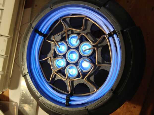 Este es mi intento hacer el Reactor de arco de hierro hombre 1.He agregado un interruptor en el circuito electrónico para que cuando un imán está en las inmediaciones, las luces de arco hasta que un efecto bastante impresionante!¡ Mira mi video de él